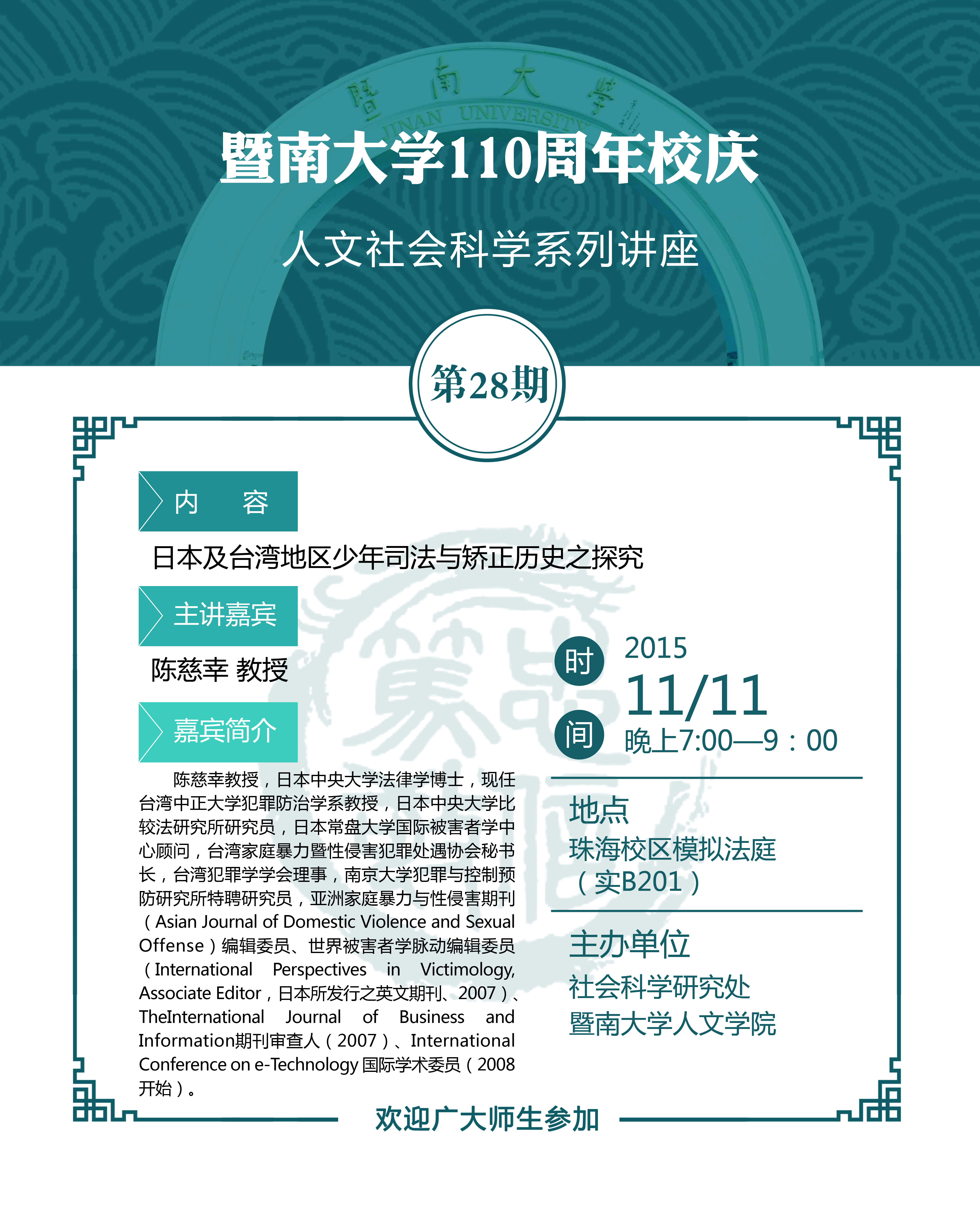 必威平台,必威(中国)一站式服务平台110周年校庆人文社会科学系列讲座第28期:日本及台湾地区少年司法与矫正历史之探究