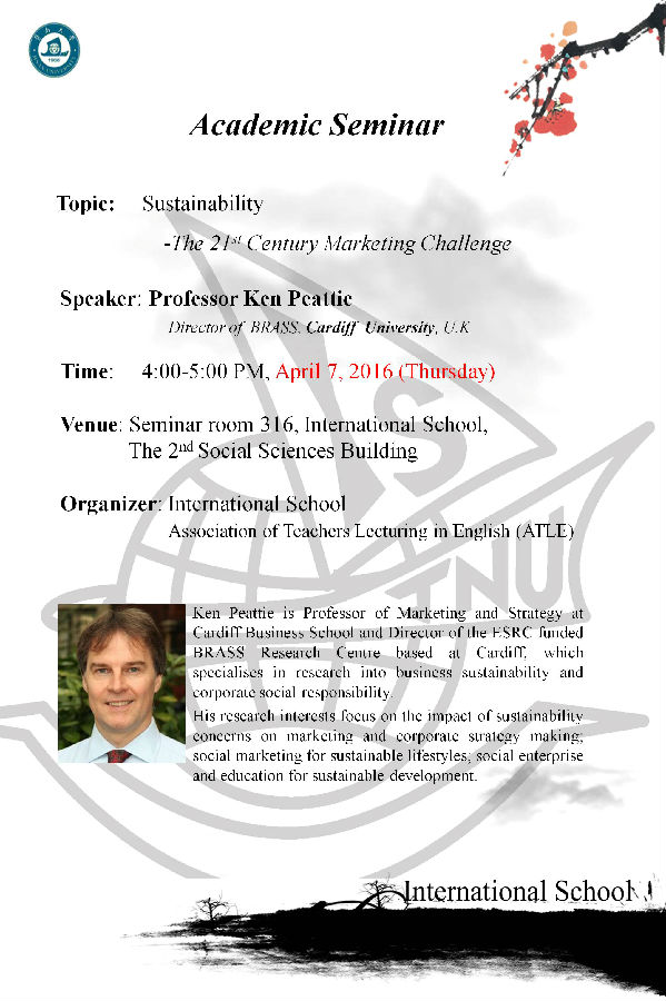 1. Keynote speech by Prof. Ken Peattie from Cardiff University, U.K