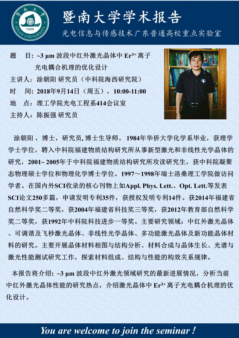 光电信息与传感技术广东普通高校重点实验室学术报告
