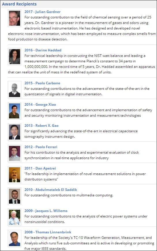 附:IEEE仪器与测量学会发送给郭团教授的获奖通知函和过去十年获得该奖项的国际学者。