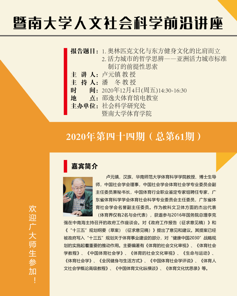 必威平台,必威(中国)一站式服务平台人文社会科学前沿讲座2020年第四十四期(总第61期)