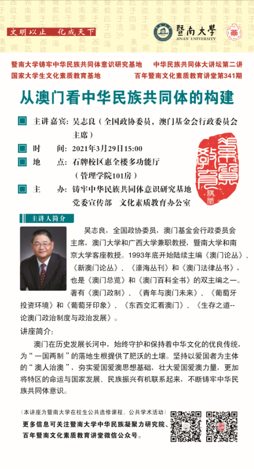 中华民族共同体大讲坛第二讲:从澳门看中华民族共同体的构建
