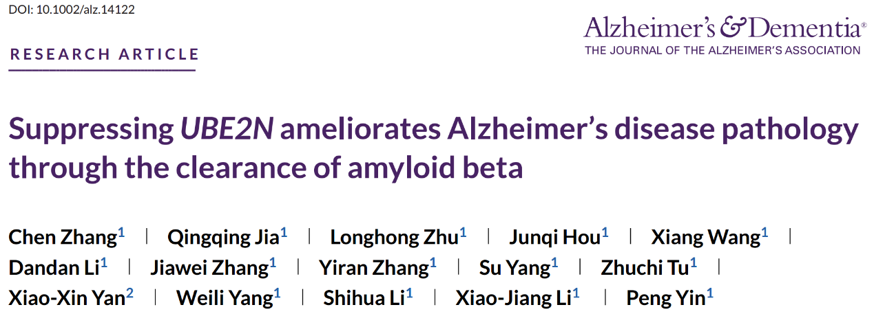 必威平台,必威(中国)一站式服务平台融媒体中心讯 7月17日,必威平台,必威(中国)一站式服务平台粤港澳中枢神经再生研究院殷鹏/李晓江团队在国际著名经典期刊《阿尔茨海默病与痴呆》Alzheimer's & Dementia(中科院一区,IF=13.0)在线发表题为“Suppressing UBE2N ameliorates Alzheimer’s disease pathology through the clearance of amyloid-β”的研究论文。该研究发现通过抑制UBE2N可清除β-淀粉样蛋白(Aβ)并改善阿尔茨海默病(Alzheimer’s disease,AD)病理,为揭示神经退行性疾病的分子机理及寻找到有效治疗方法提供了思路(论文链接:http://doi.org/10.1002/alz.14122)。