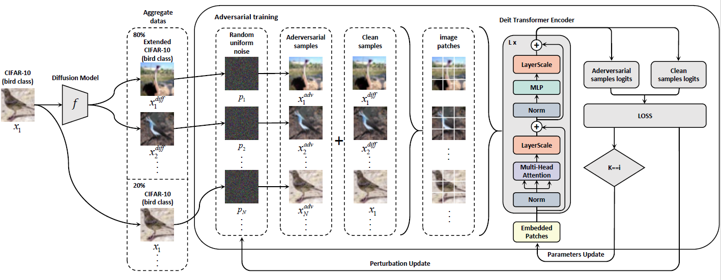 成果简介:在长时间内,Vision Transformers(ViTs)一直被认为不适合在小规模数据集上获得强大的表现,而WideResNet模型则在这一领域占据主导地位。尽管WideResNet模型在CIFAR-10和CIFAR-100等数据集上持续设定了最先进的(SOTA)鲁棒性准确率,但本文挑战了只有WideResNet能够在这一背景下表现优异的普遍观点。我们提出了一个关键问题:ViTs是否能够超越WideResNet模型的鲁棒性准确率?我们的结果给出了一个肯定答案。通过结合扩散模型生成的数据进行对抗训练,我们证明了ViTs确实可以在鲁棒性准确率方面超越WideResNet。具体而言,在无穷范数威胁模型下,epsilon = 8/255时,我们的方法在CIFAR-10上达到了74.97%的鲁棒准确率,在CIFAR-100上达到了44.07%的鲁棒准确率,相较于之前的SOTA模型,分别提高了+3.9%和+1.4%。值得注意的是,我们的ViT-B/2模型,参数量是WRN-70-16的三分之一,且超越了此前表现最好的WRN-70-16。我们的成就开辟了一条新道路,未来采用ViTs或其他新型高效架构的模型,可能最终取代长期主导的WRN模型。