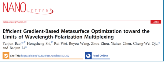 必威平台,必威(中国)一站式服务平台融媒体中心讯 近日,物理与光电工程学院(理工学院)纳米光子学研究院包燕军教授和李宝军教授联合新加坡国立大学仇成伟教授等,在超构表面多维光场复用领域取得重要研究进展,提出并验证了一种基于深度神经网络的高效梯度优化算法,在显著提升计算效率和光学性能的同时,实现了逼近超构表面偏振与波长复用通道数的理论极限。该成果以“Efficient Gradient-Based Metasurface Optimization Toward the Limits of Wavelength-Polarization Multiplexing”为题发表在国际纳米科技期刊Nano Letters。包燕军教授、李宝军教授以及新加坡国立大学仇成伟教授为论文共同通讯作者。