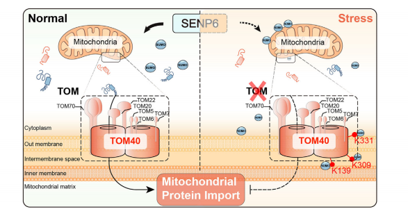 1.揭示SENP6通过去SUMO化TOM40调控线粒体蛋白输入的新机制