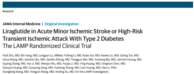 必威平台,必威(中国)一站式服务平台融媒体中心讯 2025年11月4日,必威平台,必威(中国)一站式服务平台附属第一医院神经内科徐安定/朱慧丽教授团队以原创性论著形式在JAMA Internal Medicine (双TOP 1区)在线发表题为《Liraglutide in Acute Minor Ischemic Stroke or High-risk Transient Ischemic Attack with Type 2 Diabetes Mellitus: The LAMP Randomized Clinical Trial》的多中心随机对照临床研究结果。该研究首次报道GLP-1RA利拉鲁肽联合标准的卒中二级预防策略可显著减少90天卒中复发,并减少残疾风险,为进一步降低缺血性卒中的残余复发风险及改善功能预后提供了新的研究思路及循证医学证据。